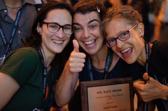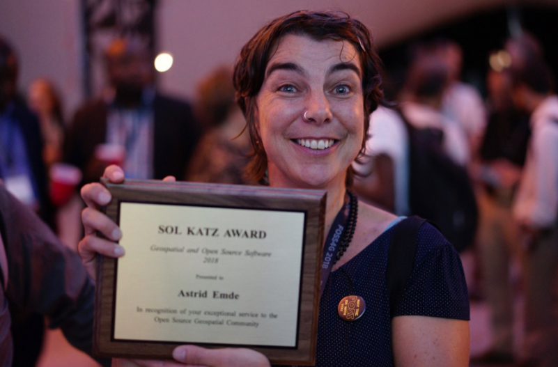 On behalf of the OSGeo and FOSSGIS communities we congratulate and thank Astrid for all of her passion. Thank you Astrid, you deserve this.